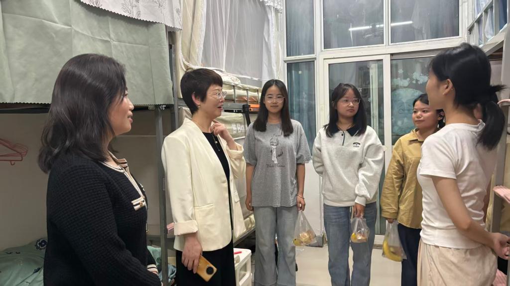 随后,老师们深入学生宿舍,走访慰问留校同学,送上精心准备的月饼、水果等节日礼品。走访过程中,老师们与同学们亲切交谈,了解他们的家乡风俗与在校适应情况,并叮嘱大家注意假期安全、保持与家人的联系,做到“在校如在家”,温暖度过双节。同时,老师们也就同学们关心的社团活动、心理调适等话题展开交流,鼓励大家积极参与校园文化活动,充实假期生活。