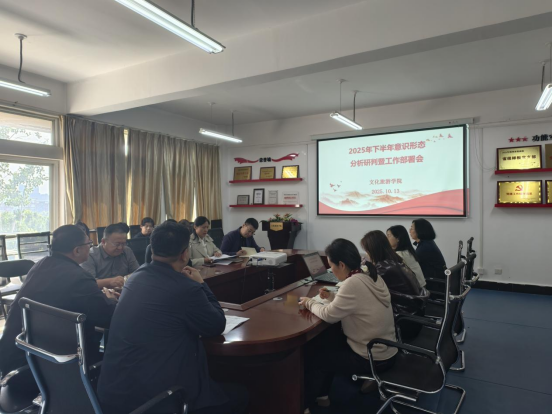 为进一步加强和改进新形势下意识形态工作,明确下一阶段重点任务,文化旅游学院于10月13日在笃行楼630会议室召开2025年下半年意识形态分析研判暨工作部署会。学院党总支全体委员、各教研室主任及全体辅导员参加会议,会议由学院党总支书记苏威主持。