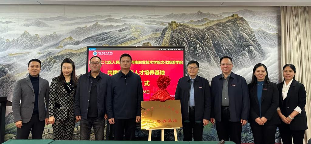 10月28日下午,河南职业技术学院与郑州市二七区人民政府共建“微短剧人才培养基地”授牌仪式在文化旅游学院举行。二七区党组成员、副区长王森涛,区文化旅游体育局副局长郑阳,区公共文化中心主任董阳,区机关事务中心副主任雷书志;河南职业技术学院党委委员、副校长任枫轩,文化旅游学院院长陈佳平出席仪式。授牌仪式由文化旅游学院副院长付红丹主持。