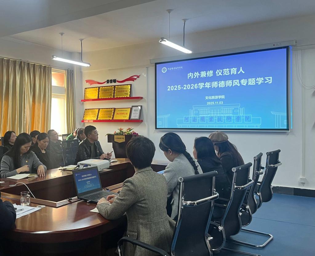 为深入贯彻《中共河南省委教育工作委员会河南省教育厅关于在全省教育系统开展“铸魂强师,奋进有我”师德主题教育活动的通知》(豫教工委〔2025〕31号)精神,认真落实学校《关于开展师德师风专题培训的通知》相关工作部署,切实加强和改进新时代我院师德师风建设,我院于2025年11月3日下午在笃行楼630会议室组织召开了“内外兼修 仪范育人”师德师风专题学习会。