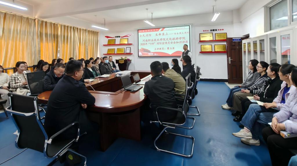 为深入落实学校119消防宣传月工作要求,切实提升师生消防安全意识和应急处置能力,11月13日下午,文化旅游学院邀请河南省消防协会曹玉臣教员,在笃行楼630开展消防安全专题培训。