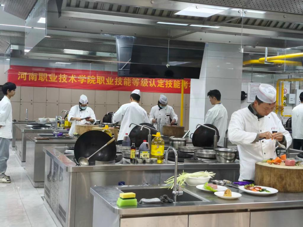 11月15日,河南职业技术学院文化旅游学院健行楼烹饪实训中心内,中式烹调师(四级)职业技能等级认定实操考试有序进行。本次考试的考生均来自学院企业新型学徒制合作单位——河南华彩生态农业有限公司,是校企协同育人与服务地方产业发展的生动实践。