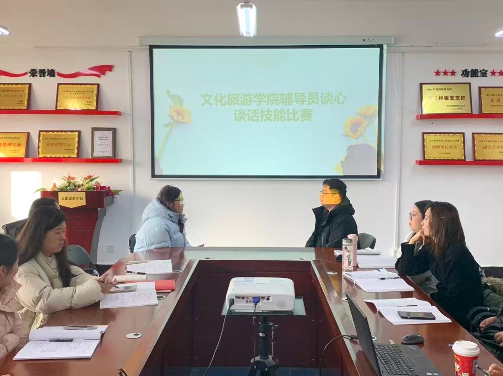 为持续提升辅导员队伍的思想政治工作能力与育人实效,12月24日,文化旅游学院在笃行楼630成功举办2025年“匠心育魂,对话成长”辅导员谈心谈话技能大赛院级选拔赛。学院全体专兼职辅导员积极参与,院党总支副书记田嘉、学工办书记敬璐担任评委。
