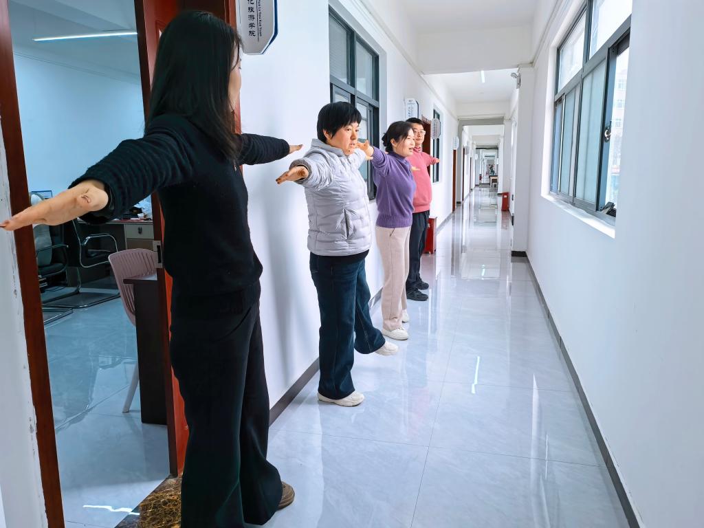 学院以第九套广播体操为统一内容,采取分散自学+集中练习模式,组织教师学习校工会教学视频、规范动作。锻炼时,老师们精神饱满、舒展有序,在工作间隙有效缓解久坐疲劳与工作压力,展现出积极向上的精神风貌。