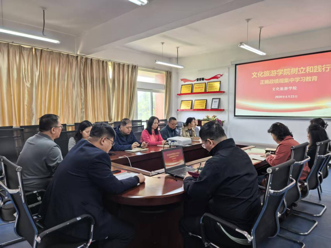 为深入开展树立和践行正确政绩观学习教育,引导全院党员干部坚定理想信念、强化务实担当,4月23日,文化旅游学院党总支在笃行楼630召开树立和践行正确政绩观集中学习教育会议。学院全体党员教师参加会议,会议由学院党总支书记苏威主持。